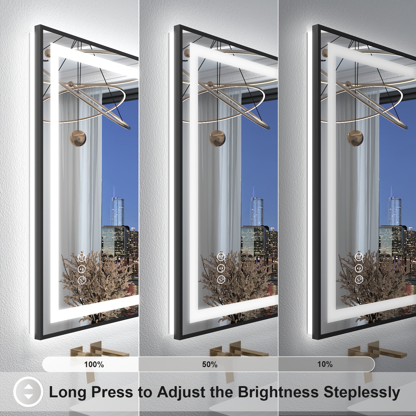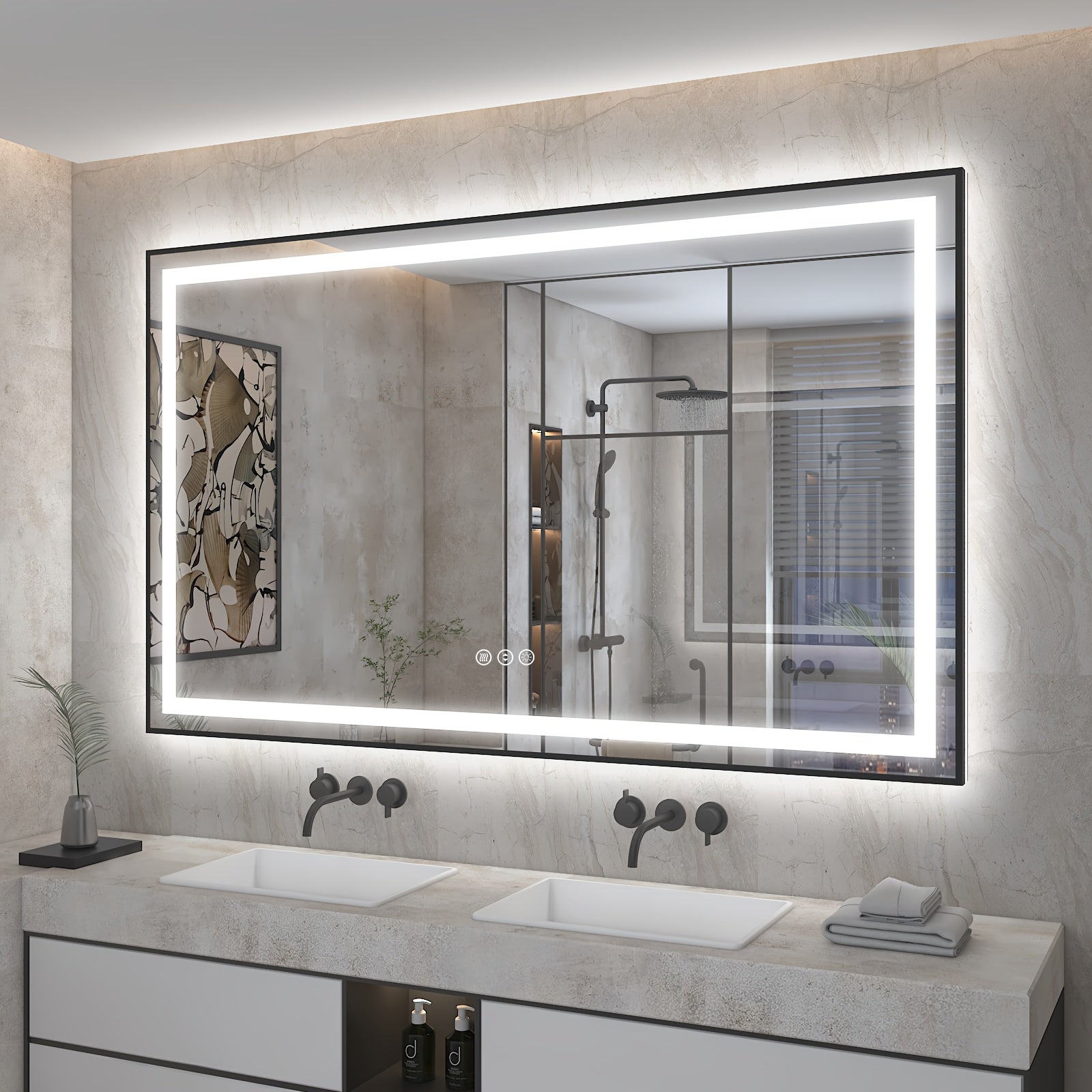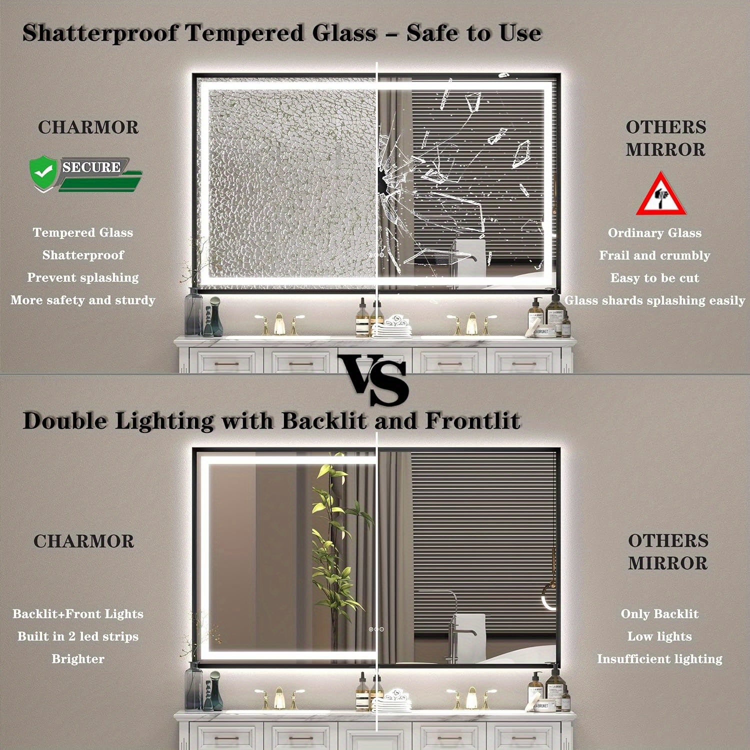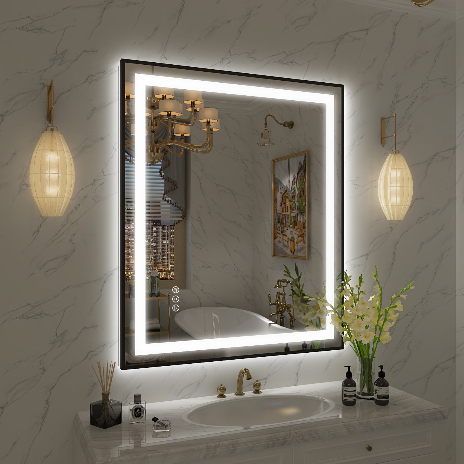 LED Bathroom Mirror with Black Frame - Backlit & Front Lighted Vanity Mirror, Shatterproof